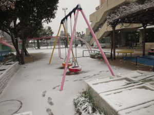 幼稚園の園庭も真っ白で、子ども達も大喜び!