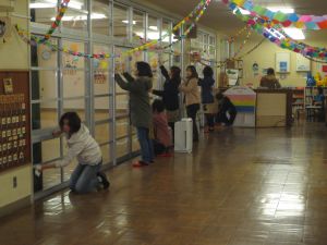 お母さん達は、遊戯室やトイレ、廊下、会議室の大掃除。