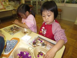 そして、園庭に咲いていた千日紅のドライフラワーや南天の実・・・