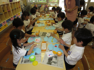 きりんチームは、丸いおりがみを使って